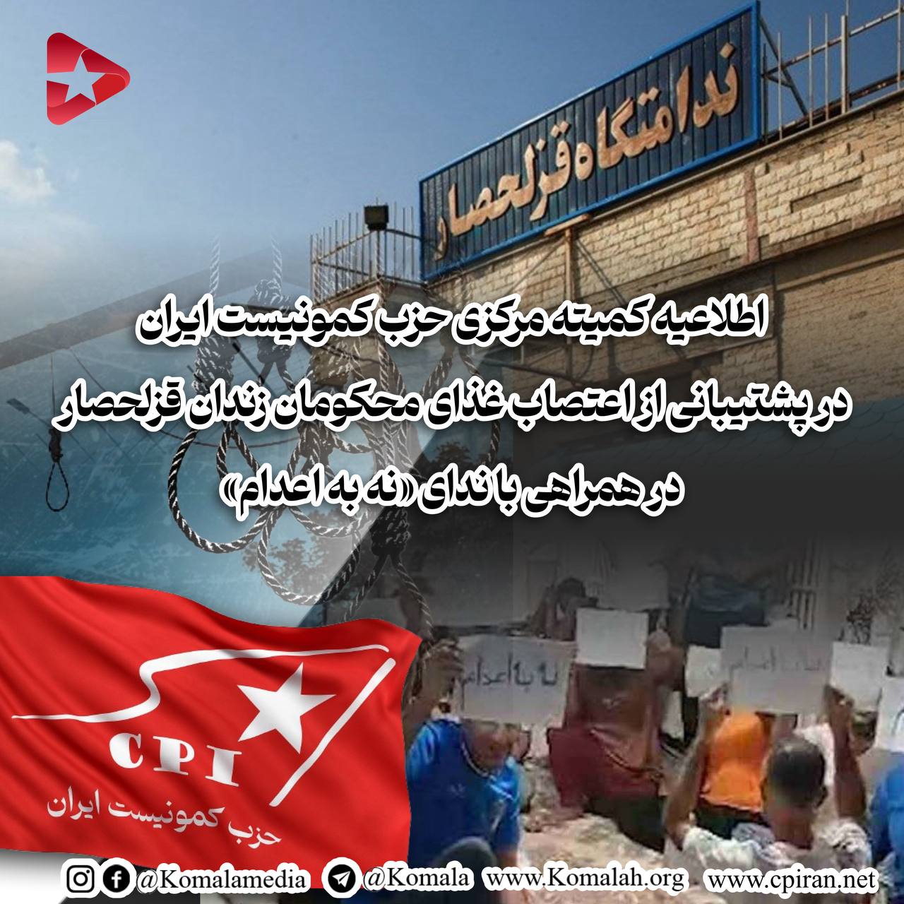 اعدام، قتل سازمانیافته دولتی است و باید فوراً متوقف شود. سیاستهای ارعاب و کشتارِ جمعی، نه امنیت میآفریند و نه عدالت؛ بلکه بر عمق بحرانهای اجتماعی و اخلاقی میافزاید. زندانیان معترض حق دارند بدون تهدید و خشونت خواستههای خود را طرح کنند و از دادرسی عادلانه، دسترسی به وکیل مستقل و رسیدگی انسانی برخوردار شوند. خانوادههای محکومان و معترضین نباید تنها گذاشته شوند؛ حمایت جامعه مدنی ضروری و فوری است. حزب کمونیست ایران، ضمن اعلام همبستگی کامل خود با زندانیان در اعتصاب غذا، تأکید میکند که مبارزه برای آزادی و عدالت، مبارزهای جمعی است؛ از دیوارهای زندان تا خیابان، از کارگاهها تا دانشگاهها، از ایران تا هر نقطهای از جهان. از اینرو از همهٔ آزادیخواهان، نهادهای حقوق بشری، فعالان صنفی و اجتماعی، هنرمندان، دانشجویان، معلمان، پرستاران و شهروندان انسان دوست میخواهیم: