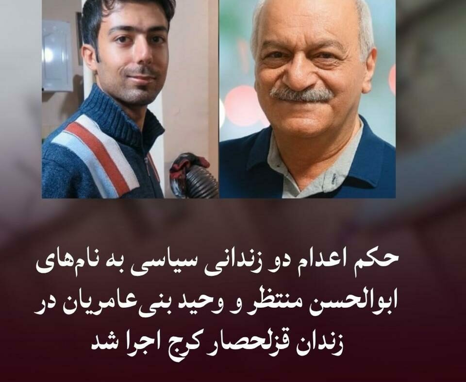 سحرگاه امروز شنبه 15 فروردین، حکم اعدام دو زندانی سیاسی، به نامهای “ابوالحسن منتظر و وحید بنیعامریان”، در زندان قزلحصار واقع در کرج به اجرا درآمد.