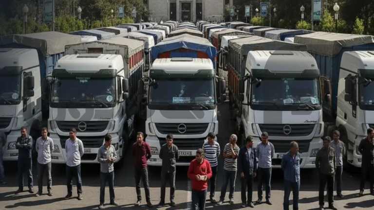 گروهی از رانندگان خودروهای سنگین در جیرفت، در اعتراض به طرح جدید مالیاتی، مقابل اداره صنعت و معدن این شهرستان، تجمع کردند.