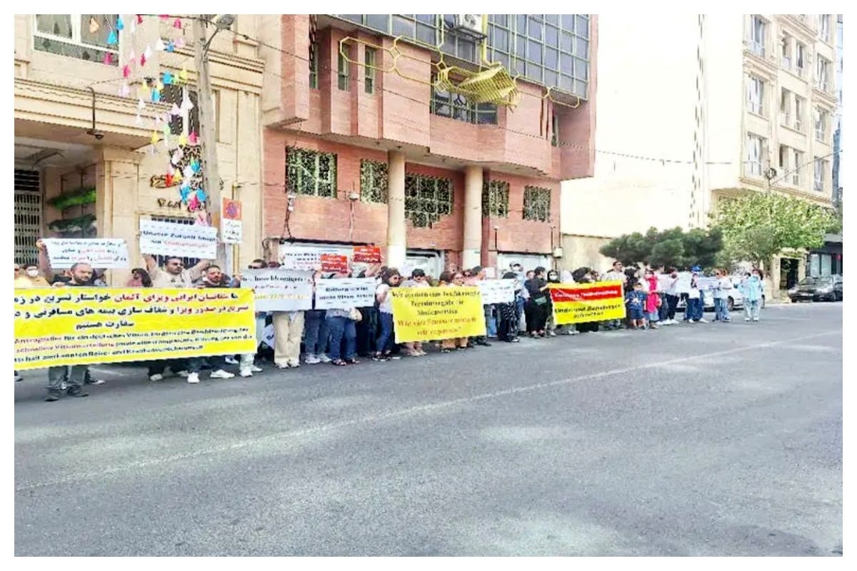 گروهی از متقاضیان ویزای اتریش، روز یکشنبه 25 آبان، در اعتراض به زمان طولانی رسیدگی به پروندهها و نبود شفافیت در روند صدور ویزا، مقابل سفارت اتریش در تهران تجمع کردند.