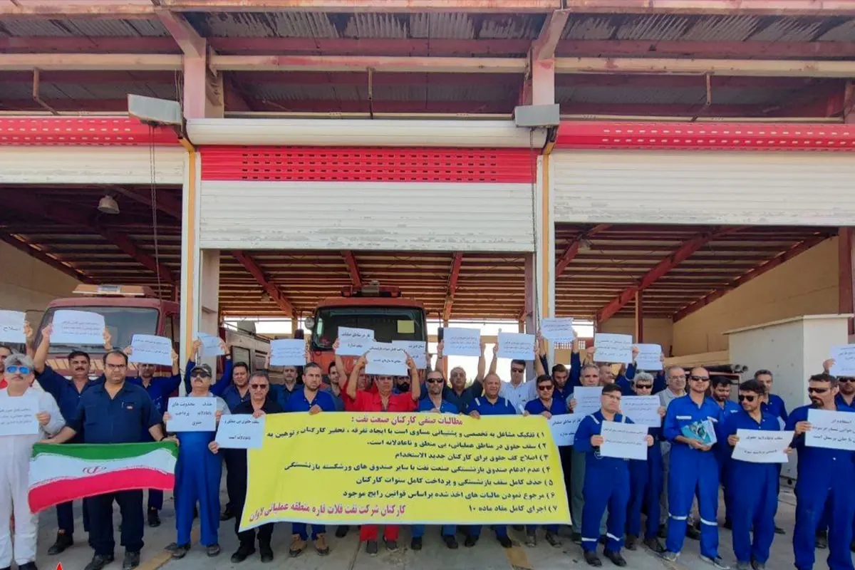 جمعی از کارگران شرکت نفت فلات قاره در مناطق خارک و سیری، روز یکشنبه ۲ آذر، در محل کار خود، نسبت به وضعیت حقوق و مزایا اعتراض کردند.