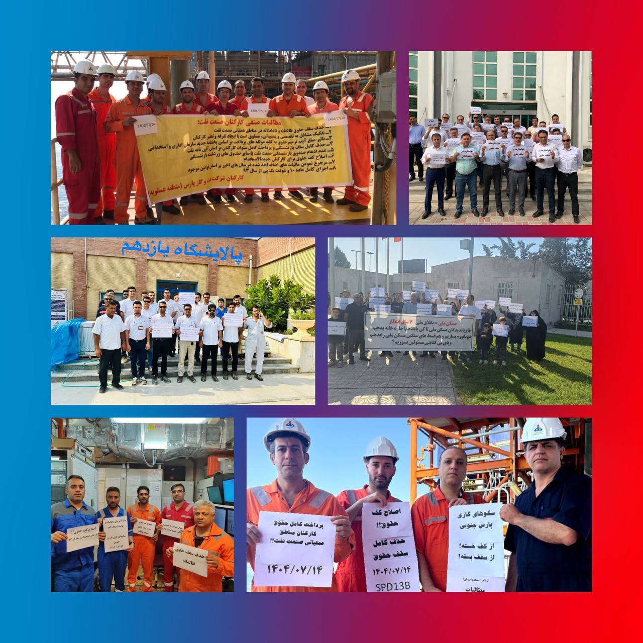 این اعتراضات در نقاط مختلفی از جمله شرکت نفت و گاز پارس (عسلویه)،سکوی دریایی پارس جنوبی، سازمان منطقه ویژه اقتصادی انرژی پارس، مجتمع گازی پارس جنوبی، پالایشگاه یازدهم و سکوهای دریایی شرکت نفت و گاز پارس برگزار شده است.معترضان با در دست داشتن پلاکاردهایی خواستار تحقق مطالبات صنفی و شغلی خود شدند.اصلاح نظام حقوق و دستمزد،پرداخت کامل حقوق،حذف کسورات ناعادلانه،اجرای قراردادهای استخدامی،لغو سقف حقوق،اجرای کامل ماده ۱۰ قانون وظایف و اختیارات وزارت نفت و لغو تفکیک مشاغل به تخصصی و پشتیبانی در مناطق عملیاتی از مهمترین خواستههای آنهاست.