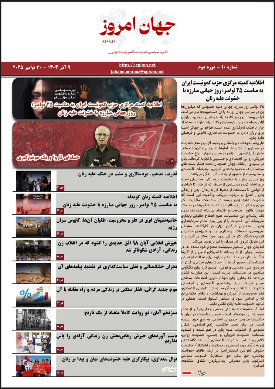 شماره ١٠ «جهان امروز» (دوره دوم) نشریه سیاسی حزب کمونیست ایران منتشر شد.