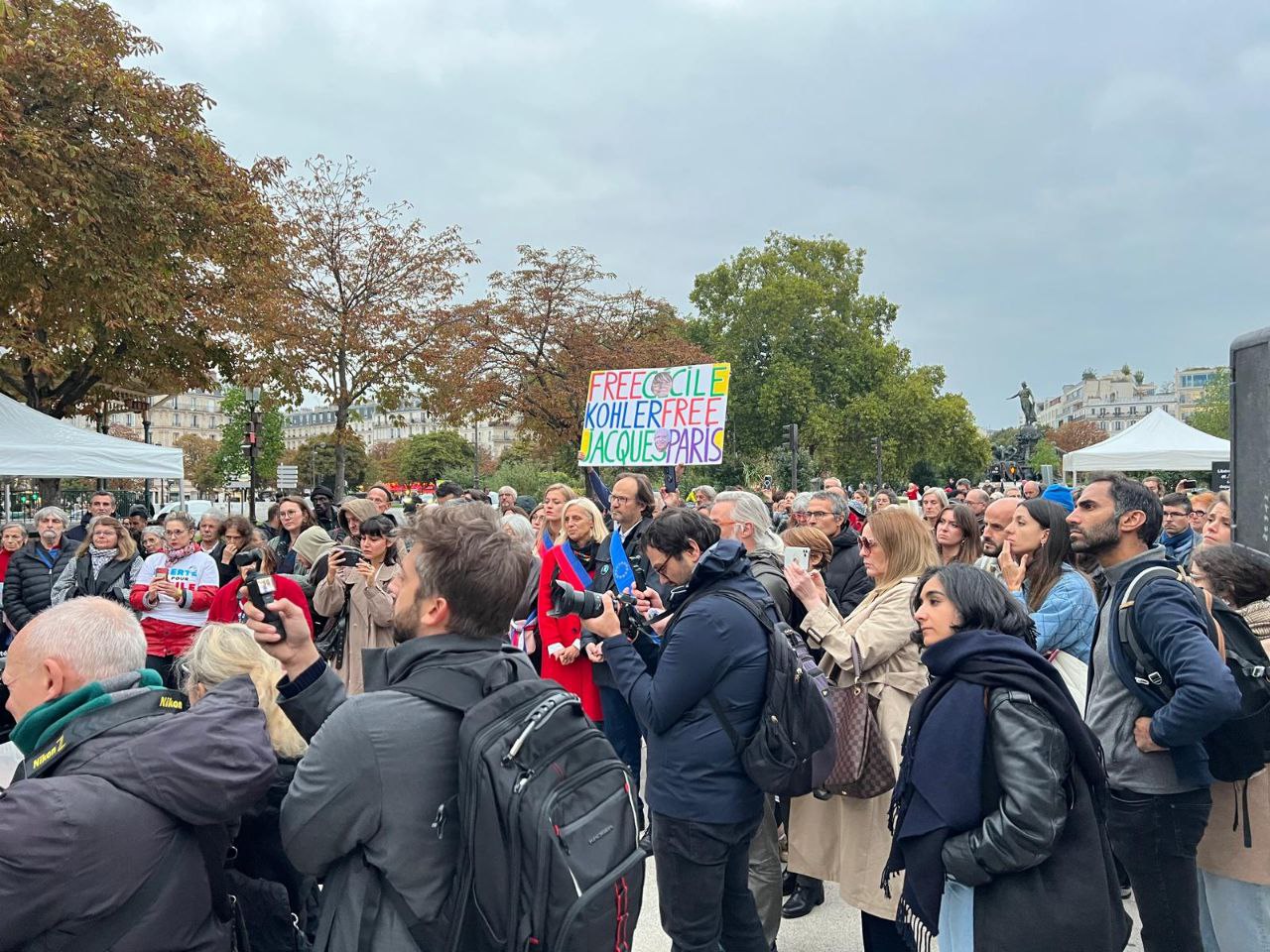 دهها نفر از ایرانیان مقیم فرانسه، مقامات و نمایندگان پارلمان فرانسه روز پنجشنبه 3 مهرماه در میدان ناسیون پاریس گردهم آمدند تا خواستار آزادی سیسل کوهلر و ژاک پاریس شوند.