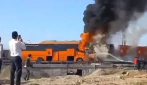 در پی برخورد زنجیرهای چندین وسیله نقلیه در محور یزد، یک دستگاه اتوبوس مسیر زاهدان به یزد بههمراه یک تریلی، یک کامیون و دو خودروی سواری تیبا و پراید با یکدیگر برخورد کردند که در پی آن خودروهای سواری دچار آتشسوزی شده و دستکم سه نفر جان خود را از دست دادند.