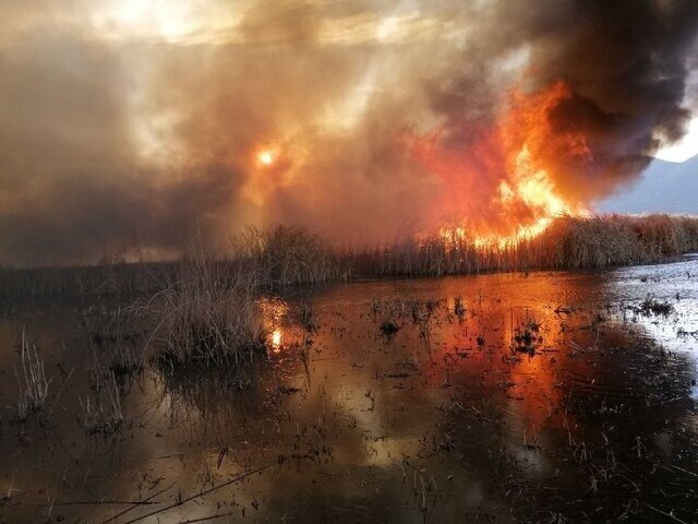 به پێی ئهو وێنانهی به دهستمان گهیشتوون، به هۆی ئاگر گرتنی نهیزارهكانی دهورووبهری دهریاچهی زرێباری مهریوان، زیانێكی زۆر بهر سروشتی ئهو ناوچه گهیشتووه.