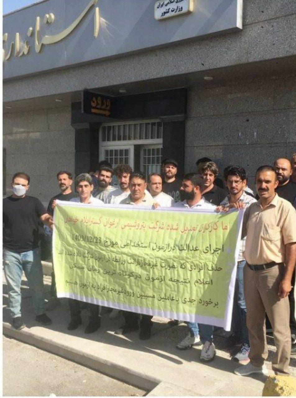 ڕۆژی یهكشهممه ٩ی خهرمانان، كرێكارانی له سهر كار دهركراوی شیركهتی پترۆشیمی ئهرغهوان گوستهری ئیلام، بۆ چهندهمین ڕۆژی بهردهوام دژ به وهدینههاتنی بهڵێنهكانی بهرپرسان كۆبوونهوه.