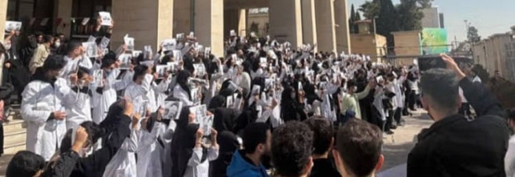 به وتهی سهرچاوهكانی ههواڵ، بهشداربووانی مانگرتنهكه به بهڕێوهبردنی كۆبوونهوه و وتنهوهی درووشم دژ به دهسهڵاتی جهنایهتكاری كۆماری ئیسلامی و دهستبهسهركرانی كادری دهرمان و پزیشكان، ئاماژهیان بهوه كرد كه دهستبهسهركرانی كادری دهرمان به هۆی دهرمانكردنی بریندارانی ناڕهزایهتییهكان، به پێچهوانهی مافهكانی مرۆڤه و پێویسته ڕژیمی كۆماری ئیسلامی وهڵامی تاوانهكانی بداتهوه. له درێژهی كۆبوونهوهكهدا خوێندكاران جهختیان لهسهر ئهوه كردهوه كه تا كاتی وهدیهاتنی داخوازییهكانیان بهردهوام ئهبن له مانگرتن و كۆبوونهوه.