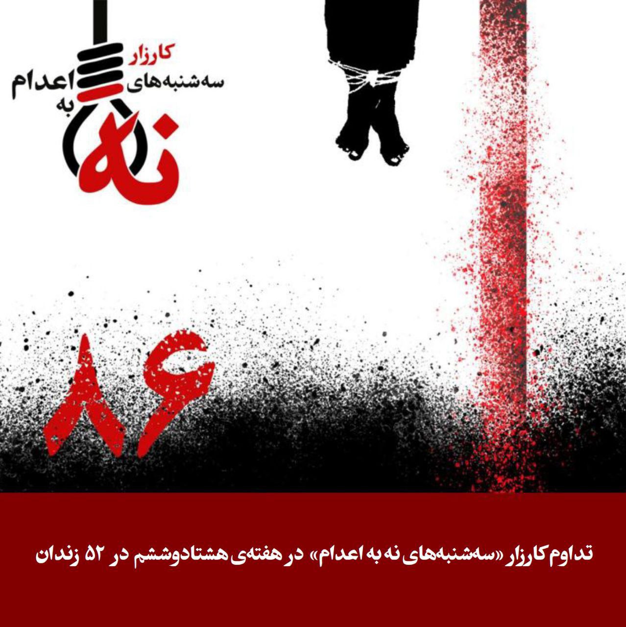 به پێی ڕاپۆرتهكان، هاوكات له گهڵ هاتنی ساڵیادی دهستپێكردنی شۆڕشی ژینا، بهندكراوانی بهشدار له ههڵمهتی سێشهممهكانی نا بۆ سێداره له ٥٢ بهندیخانهی ڕژیمی كۆماری ئیسلامی مانیان گرت و به بڵاو كردنهوهی بهیاننامهیهك ئاماژهیان بهوه كرد كه له سێ ساڵی ڕابردوو و پاش دهستپێكردنی شۆڕشی ژینا، ٣١٧٥ بهندكراو له زیندانهكانی ڕژیم له سێداره دراون كه ٤٩ كهسیان زیندانی سیاسی بوون. له بهردهوامی بهیاننامهكهدا جهخت له سهر ئهوه كراوهتهوه كه تا كاتی ههڵوهشاندنهوهی حوكمی سێدارهی ههموو بهندكراوان و ئازادی بێ مهرجی ههموو بهندكراوانی سیاسی و عهقیدهتی بهردهوام ئهبن له مانگرتن و ناڕهزایهتییهكان له زیندانهكانی دیكهش بڵاوتر دهكهنهوه.