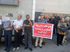 ڕۆژی سێشهممه ٨ ی ڕهزبهری ١٤٠٤، خانهنشینكراوانی كرماشان له شاری كرماشان، له بهردهم بینای سندوقی خانهنشینی له شاری كرماشان كۆبوونهوه.