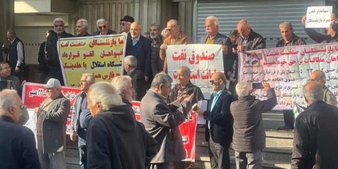 ڕۆژی ڕابردوو، خانهنشینكراوانی شیركهتی نهوت دژ به كهمبوونی حهقدهستهکانیان له بهردهم سندوقی خانهنشینكراوان كۆبوونهوه.