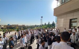 ڕۆژی یهكشهممه ١٣ی ڕهزبهری ١٤٠٤ی ههتاوی، خوێندكارانی پهرهستاری زانكۆی زانسته پزشكییهكانی ههمهدان دژ به پێنهدانی كار به خوێندكاران ناڕهزایهتییان دهربڕی.