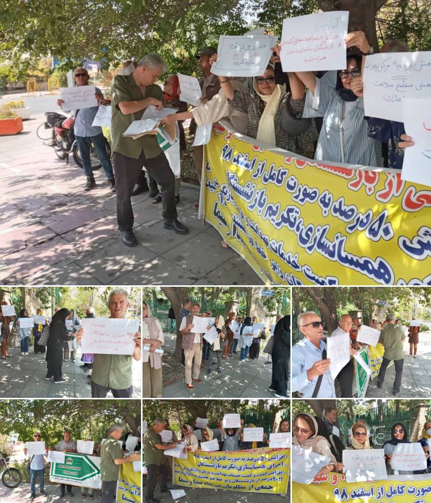 ڕۆژی دووشەممە ٢٧ی گەولاوێژ، خانەنشینکراوانی سەداوسیما لە بەردەم مزگەوتی بلال لە شاری تاران کۆبوونەوە و دژ بە خراپی دۆخی ژیانیان ناڕەزایەتیان دەربڕی.
