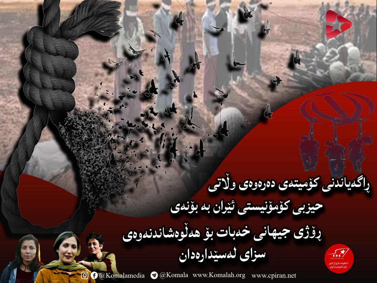 کۆمیتەی دەرەوەی وڵاتی حیزبی کۆمۆنیستی ئێران لێبڕاوانە و بێ شەرت و مەرج، خوازیاری هەڵوەشاندنەوەی دەستبەجێ و تەواوەتی هەموو شێوازەکانی سزای لەسێدارەدان لە ئێرانە. ئێمە داوا لە سەرجەم ناوەندە نێودەوڵەتییەکان، ڕێکخراوەکانی مافی مرۆڤ، حیزبە پێشکەوتنخوازەکان و هێز و لایەنە دێموکراتیکەکان لە سەرانسەری جیهان دەکەین بە هەر شێوەیەک کە دەتوانن گوشار بخەنەسەر کۆماری ئیسلامی و ناچاری بکەن دەستبەجێ سەرجەم ئێعدامەکان لە ئێران ڕابگرێت. هەروەها داوا لە سەرجەم هێز و لایەنە خەباتکار و ئازادیخوازەکانی ناوەوە و دەرەوەی وڵات دەکەین کە خواستی هەڵوەشاندنەوەی سزای لەسێدارەدان، بکەن بە یەکێک لە ویست و داخوازییە سەرەکییەکانی خەبات و تێکۆشانیان. بێ گومان هەر هەنگاوێک و هەر چالاکیەک لەم بوارەدا دەتوانێ ئەڵقەیەکی کاریگەر بێت لە زنجیرەیەک، کە سەرەنجام دەبێتە هۆی داڕمانی تەواوەتی نەزمی کۆنەپەرستانە و دژە خەڵکی کۆماری ئیسلامی.