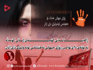 ئێمە لەم ڕۆژە جیهانییەدا، وێڕای ڕێزگرتن لەو ژنانەی کە لەم پێناوەدا گیانیانبەختکردووە یان لەژێر ئەشکەنجە و لەناو زیندانەکانی ڕێژیمی کۆماری ئیسلامیدان، لەسەر پێویستی شکڵگرتنی خەباتێکی یەکگرتووانە، ڕێکخراو و شێلگیر لە دژی هەموو جۆرەکانی توندوتیژیی جەخت دەکەینەوە. ئێمە هەروەها جەخت لەوە دەکەینەوە کە بەرەنگاربوونەوە لەگەڵ توندوتیژی دژی ژنان، تەنیا ئەرکی سەرشانی ژنان نییە، بەڵکوو ئەم خەباتە پێویستی بە هاوپشتی و بەرپرسیارێتی سەرجەم ژنان و پیاوانی ئازادیخواز و یەکسانیخواز هەیە. بێدەنگبوون لە بەرامبەر توندوتیژی دژ بە ژنان، بە واتای چاوپۆشی لێکردن و بەردەوامبوونییەتی. ئێمە لەو باوەڕەداین کە ڕزگاری ڕاستەقینەی ژنان لە کۆمەڵگەیەکی ئازاد و یەکساندا، بە هەوڵ و تێکۆشانی هاوبەشی سەرجەم هێزە ئازادیخوازەکان و هەموو ستەملێکراوانی ئەم کۆمەڵگایە دەستەبەر دەبێت.