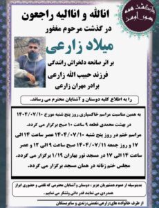 به پێی ههواڵی گهیشتوو، “میلاد زارعی” هاووڵاتی خهڵكی شاری سنه،به هۆی ڕوودانی ڕووداوی هاتوچۆ له شاری سنه، گیانی له دهستداوه.